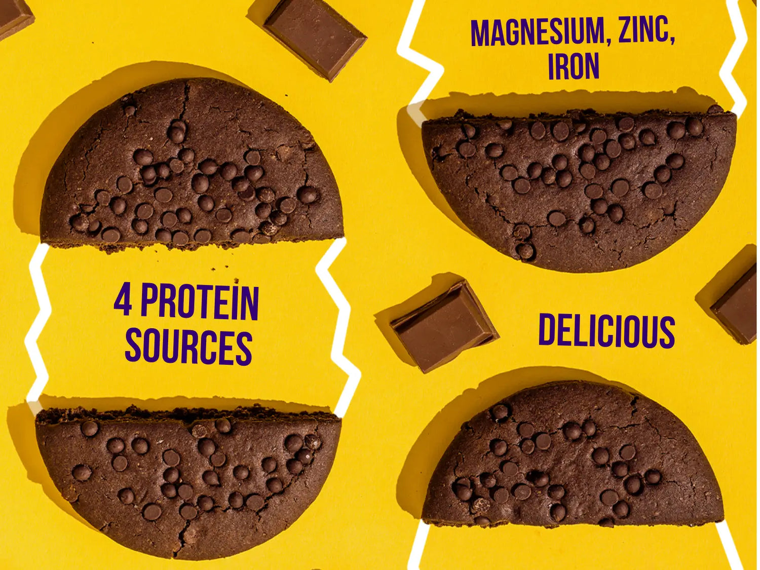 Compared to protein bars, our cookies have a higher protein content (20 g), while most bars contain around 10–16 g. The texture is also softer — many bars tend to be quite hard — and the flavor, in our opinion, is better. Many protein bars contain sugar alcohols, which can give a sharp aftertaste and cause stomach discomfort. In addition, unlike many bars, our cookies contain minerals — magnesium, zinc, and iron.
